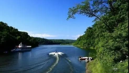 抵达景区时,最先迎接旅人的是5公里环山木栈道。脚步落在木质回响中,每一步都像是与自然签订的静谧契约。森林覆盖率超过90%的群山如绿色屏障,空气中负氧离子浓度高达每立方厘米45000个,每一次深呼吸都是身心的净化。沿着栈道缓行,湖面逐渐展开——那是一种近乎不真实的蓝,像是将长空裁剪下来,铺展在群山之间。