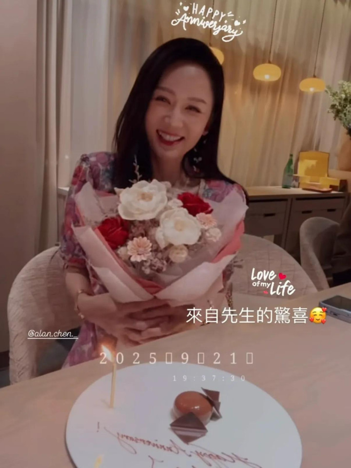 夫妇俩还一起拍了合影,Alan搂着老婆,两人依偎在一起,对镜露出幸福笑容,看起来恩爱甜蜜。不得不说,自从Alan跟陈乔恩一起后变得越来越帅了,而两人也是越看越有夫妻相呢。