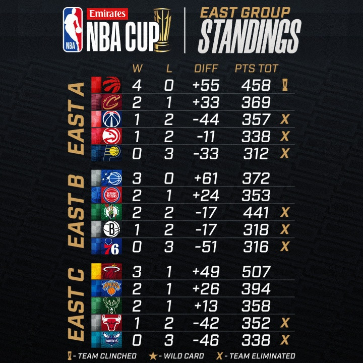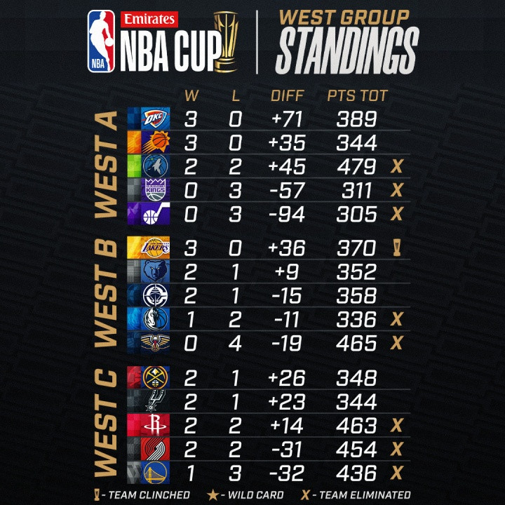 直播吧11月27日讯NBA杯小组赛仅剩最后一个比赛日,16支球队已淘汰出局,目前局势也逐渐明朗化。