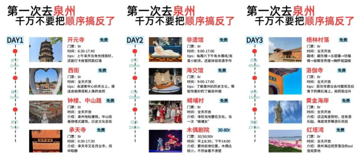 交通攻略:飞机直达泉州晋江国际机场,高铁直达泉州站;市内公交便利,景点之间距离较近,步行或打车都很方便。